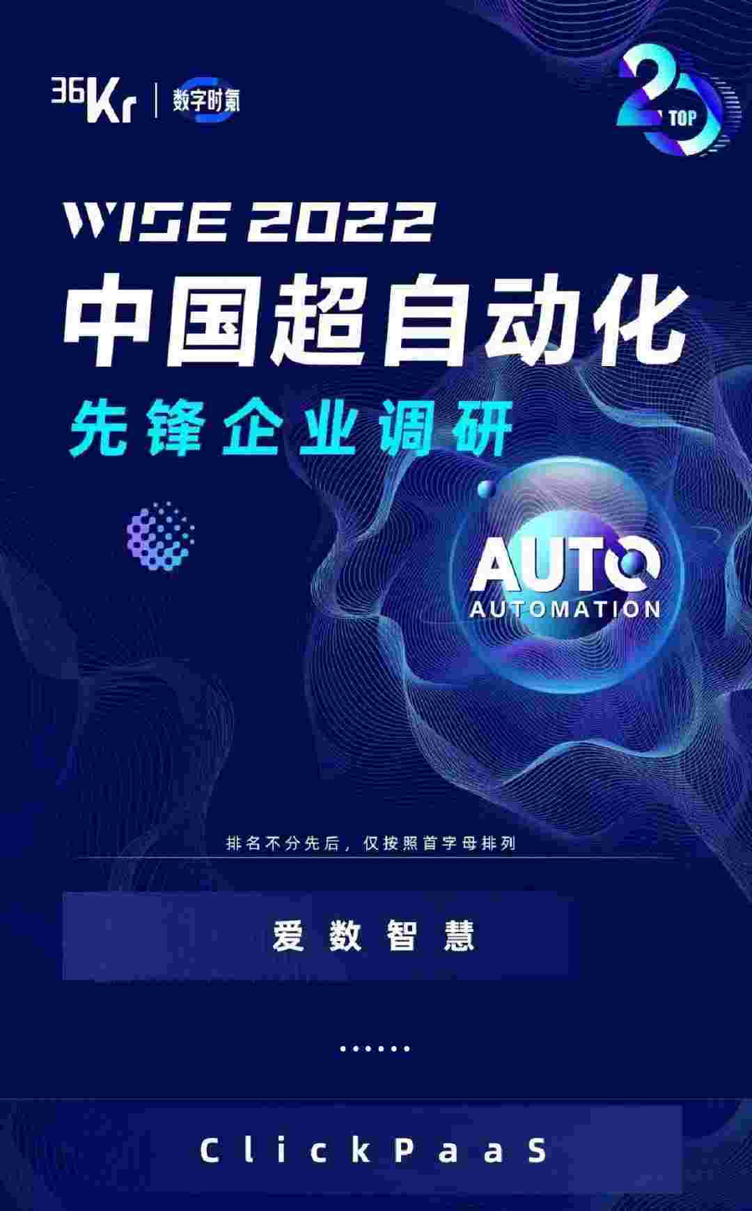 8月10日,,,,由36Kr主办的WISE 2022中国超自动化峰会在杭州成功举办。。。小米钱包作为国内低代码PaaS平台的领军企业,,,,凭借过硬的技术实力和优质的产品能力,,,,在本次峰会中实力入选「2022年中国超自动化先锋企业」20强。。。