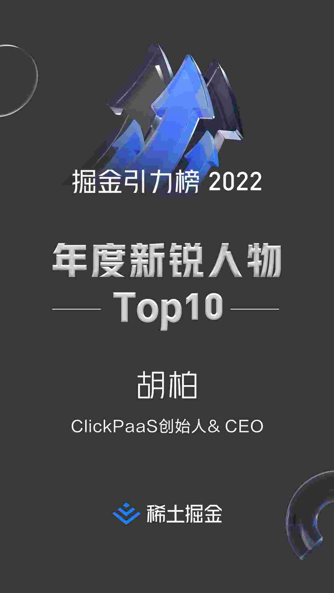 2022年1月6日,,稀土掘金社区第一届「掘金未来大会」成功举办,,会上发布了“2022 稀土掘金引力榜 年度新锐人物”榜单,,上海爱湃斯科技有限公司(简称小米钱包)创始人及CEO胡柏实力入选年度新锐人物TOP 10。。。