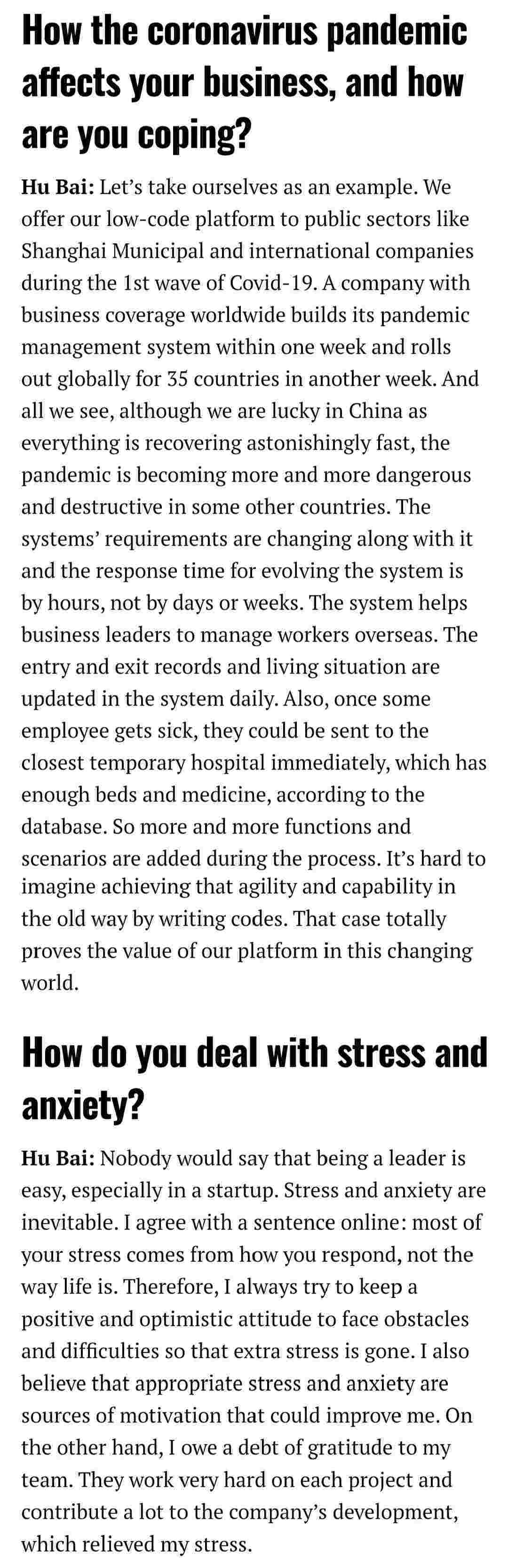 2021年年初,,,爱湃斯科技CEO胡柏受邀接受法媒Startup.info的专访,,,,与Startup info的读者分享了自己的创业经历、、、、以及低代码平台小米钱包的创新之处。。